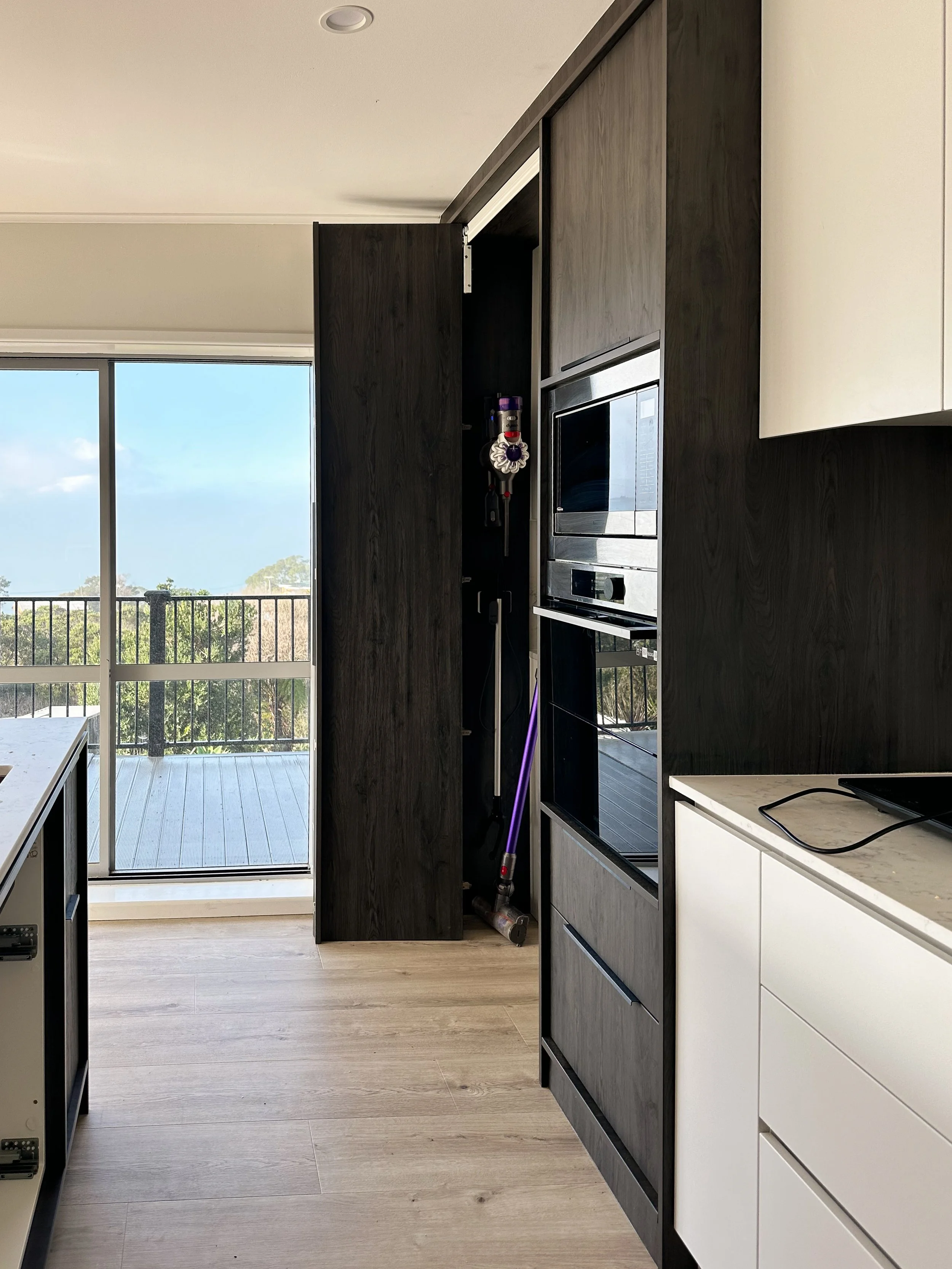 When we walked in, we were entering in a very dark space with a wall blocking the amazing real estate view of this house. The first floor area was small, with undefined spaces, awkward corners, a kitchen not functional, dated, and inadequate for the size of the family home.